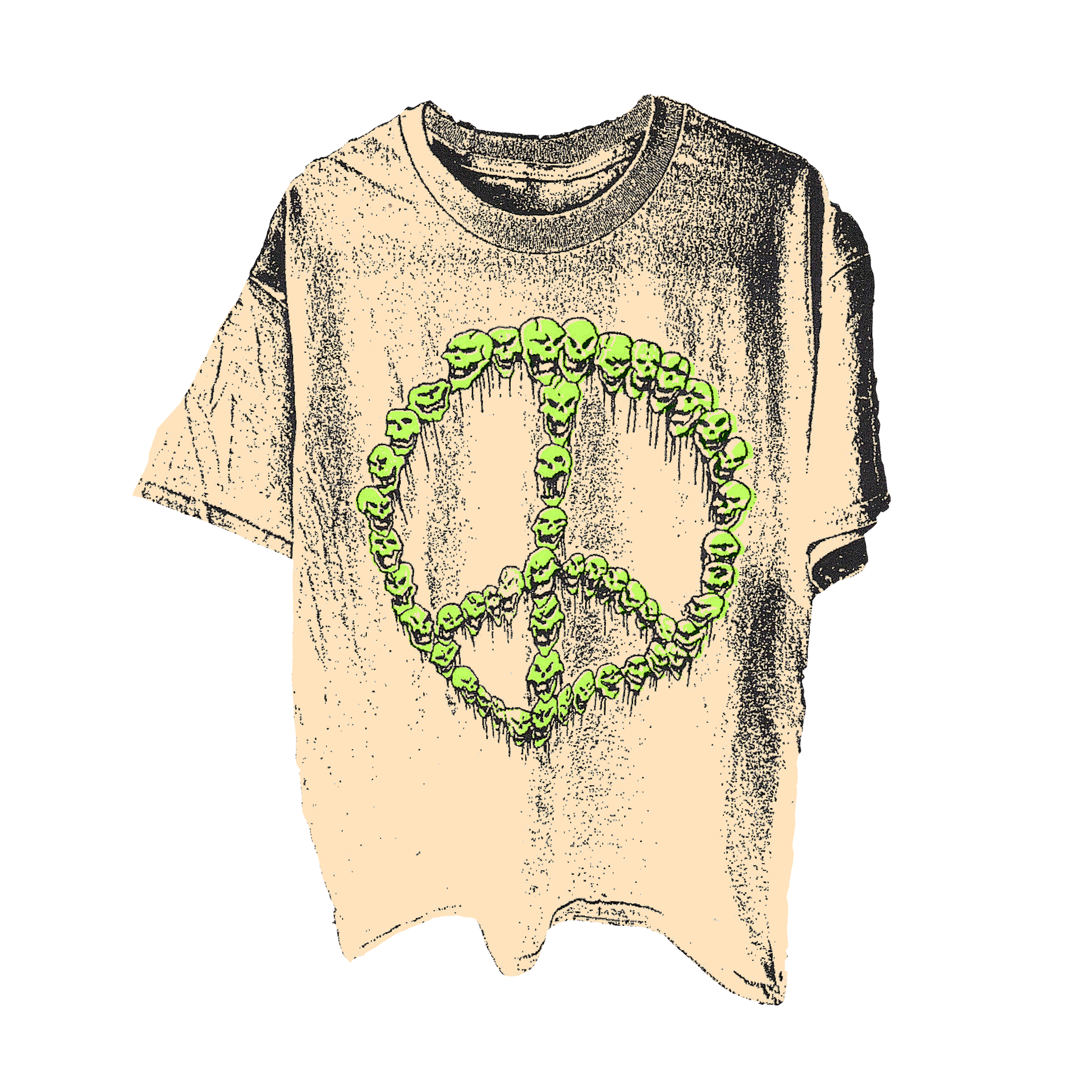 Tennis yellow and black ink on a 'natural' off-white t-shirt.